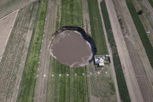 Al momento esta falla geológica tiene un diámetro de 86 por 76 metros y el área afectada es de unos 4.862 metros cuadrados.